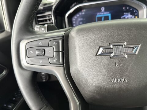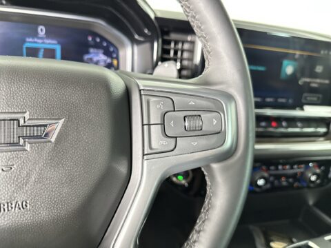 WIRELESS CHARGING, WINDOW, POWER, REAR SLIDING with rear defogger, WHEELS, 18" X 8.5" (45.7 CM X 21.6 CM) HIGH GLOSS BLACK PAINTED ALUMINUM (STD), WHEELHOUSE LINERS, REAR, USB PORTS, 2, CHARGE/DATA PORTS LOCATED INSIDE CENTER CONSOLE, UNIVERSAL HOME REMOTE, TRANSMISSION, 10-SPEED AUTOMATIC with Electronic Transmission Range Selector, (ETRS), electronically controlled with overdrive, tow/haul mode and steering column paddle shifters. Includes Cruise Grade Braking and Powertrain Grade Braking, TRAILER BRAKE CONTROLLER, INTEGRATED, TIRE, SPARE 265/70R17SL ALL-SEASON, BLACKWALL (STD), SUNROOF, POWER on Crew Cab models. This Chevrolet Silverado 1500 has a powerful Gas V8 5.3L/325 engine powering this Automatic transmission.